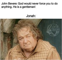 John Bevere is famous for always saying God is a gentleman and would never force you to do anything. I wonder what Jonah, in Jonah chapter 1, would think of that!